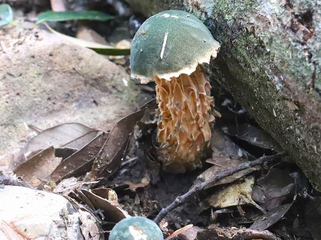 オオヤシャイグチ![]() ![]() ![]() ![]() 現地で、全員無茶苦茶悩んだオオヤシャイグチ。図鑑の記載、絵、写真がどうも。 傘の濃い緑色、柄の縦長の隆起した網目がとても印象的なきのこ。 傘の濃緑については「北陸のきのこ図鑑」の「幼時濃緑色→オリーブ色→帯黄土オリーブ色」の記載、 幼時濃緑色がしっくりとします。 柄の縦長の隆起した網目、幼時の孔口白、M女子が確認してくださった味の苦さなど 図鑑の記載に一致。とりあえずオオヤシャイグチで皆納得。 *** 和歌山にお住まいのAs様より、Austroboletus neotropicalisではないかとご指摘を受けました。 ・・・ この件について、長澤栄史先生にお尋ねし、次のようなご返事をいただきました。(25.10.22) 「写真拝見しました。特徴からみて、最初に考えられたオオヤシャイグチで結構だと思います。 柄が、隆起した網目を含め全体的にヤシャイグチに似た淡肉桂色を帯びる点で、 写真の子実体はオオヤシャイグチとしては典型的でありませんが、 その他の外観的な特徴や苦みがある点などは種の特徴をよく表しています。 柄の色の変化は、恐らく発生時における環境条件の影響を受けたものではないかと思います。(以下略)」 9月 奈良公園 ![]() 9月 奈良 生駒山 ![]() 7月 奈良 生駒山 ![]() 9月 大阪 富田林市 ![]() 7月 滋賀県 大津市 ![]() 8月 大阪 富田林市 ![]() 9月 大阪 富田林市 ![]() ![]() 胞子 ![]() ![]() 担子器 オオヤシャイグチ |