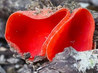 発生時期がモドキは秋、ベニチャワンタケは早春-春とされ
